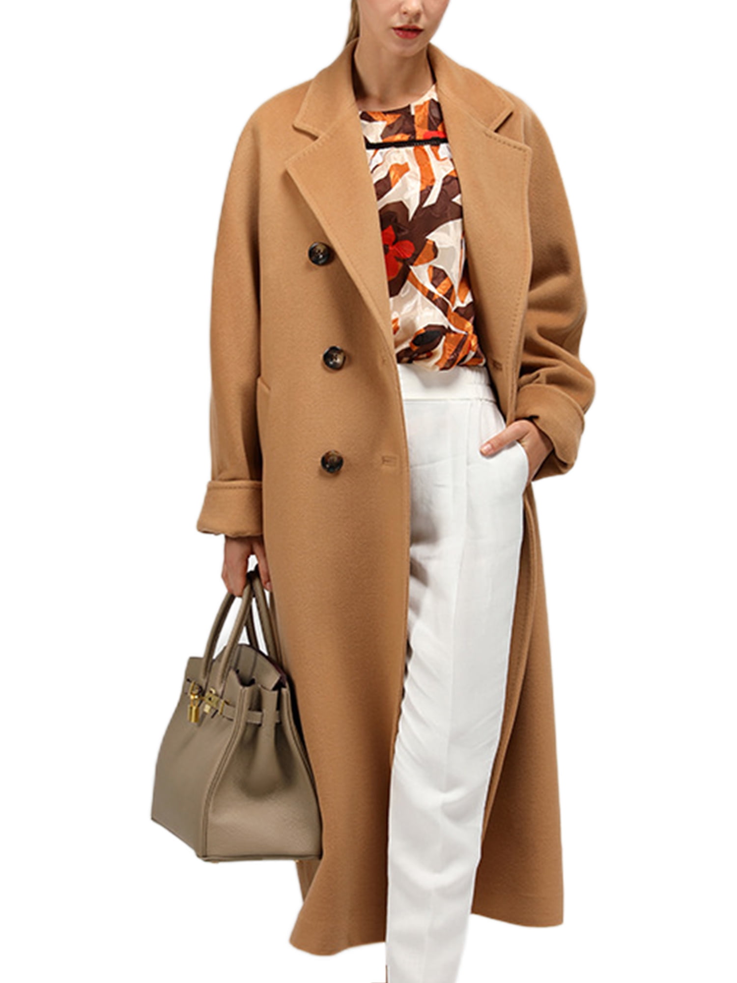 Grianlook Women Loose Double Breasted Trench Coats Long Sleeve Notch Lapel Overcoats Travel Solid Color Wool Pea Coat Camel M Walmart Com