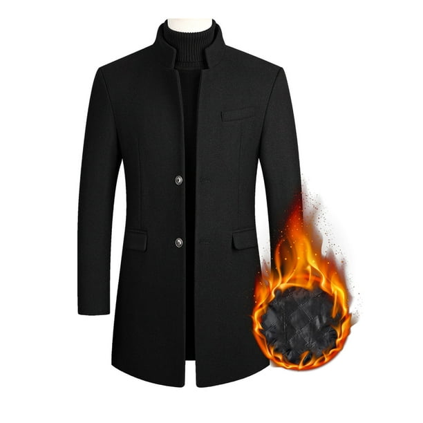 Glonme Men Trench Coats Solid Color Jacket Lapel Pea Coat Winter Warm Business Outwear Thicken Long Sleeve Overcoats Black Thickened 2xl Walmart Com